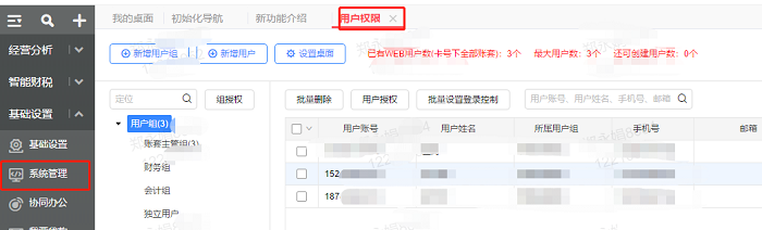 3、最后以新企业管理员152登录,在“用户管理”中点击【换绑】,并取消186企业管理员身份。