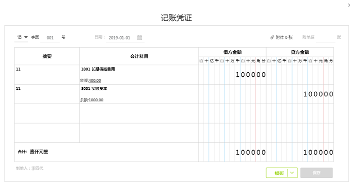 例如:在1月份做一张发生摊销费用凭证(借:长期待摊费用 贷:实收资本等)一张摊销待摊费用凭证(借:管理费用—长期待摊费用摊销 贷:长期待摊费用)