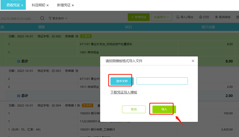 导入凭证,按以下步骤操作导入: