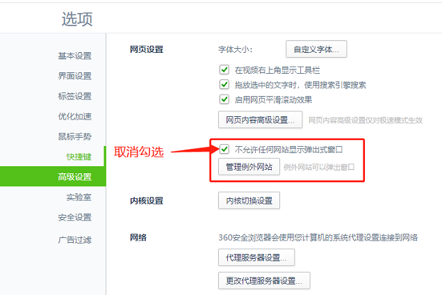 如果没有看到此弹窗,点击浏览器右上角的菜单栏下面的【设置】-【高级设置】,取消掉“不允许任何网站显示弹出式窗口”前面的√即可。如下图: