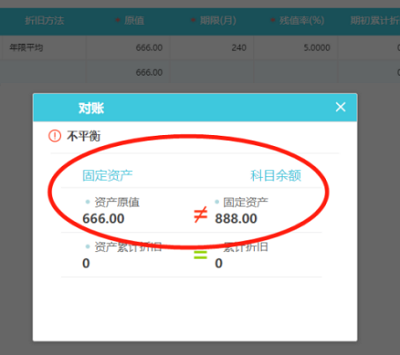 固定资产对账显示不平衡,先在“固定资产管理”模块中,查看相关有问题的固定资产,每月折旧额,与总账中该月份所计提折旧进行比对,如下图所示: