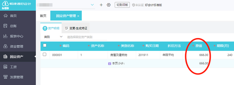录入固定资产原值台账跟总账进行对比发现原值错误: