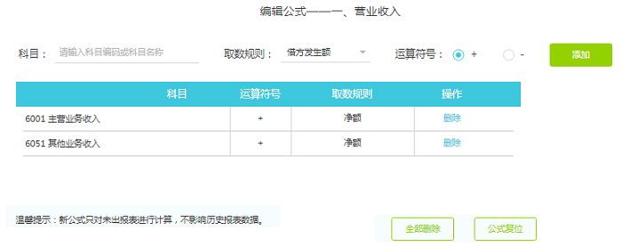 如果以上操作不能解决,可调节取数规则,先将原取数规则删除再重新设置取数规则,即取“净额”或者“贷方发生额”: