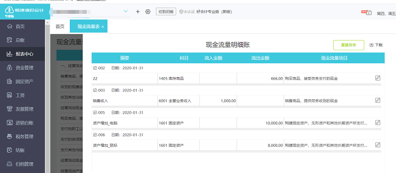 注:现金流量表是根据会计准则进行取数,银行之间的转账及现金的支取和存储不会进行取数。