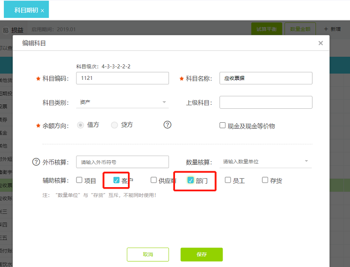 例如:可以将应收账款科目同时设置为往来核算与部门核算。
