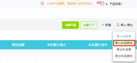 第一步:首先点击【设置】-【科目期初】,再点击右上角“导入”下的【科目期初】,下载导入模板;