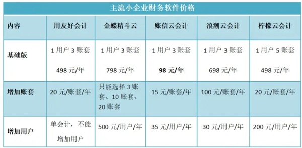 买什么东西都离不开价格,特别是对于广大小企业来说,节约成本是非常重要的一个环节。话不多说,直接上图,给大家对比一下主流小企业财务软件的价格。