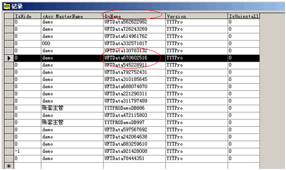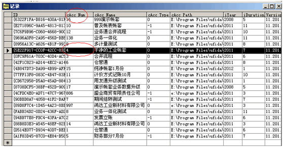 首先, 进入企业管理器, 找到UFTSystem数据库的EAP_account表,因为新一代中的数据库帐套号是加密的,不能确定是哪个帐套号对应的数据库名称是哪个,所以先得找到某帐套的cAcc_name对应的Ds_name