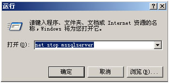 b.“开始”-“运行”- 输入“net stop mssqlserver”
