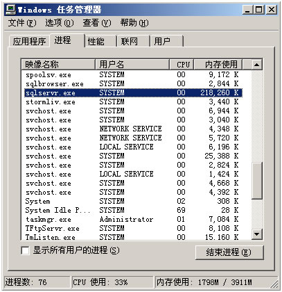 c.按 ctrl+alt+del 键进入 任务管理器(或者右击任务栏选择任务管理器)结束sqlservr进程。
