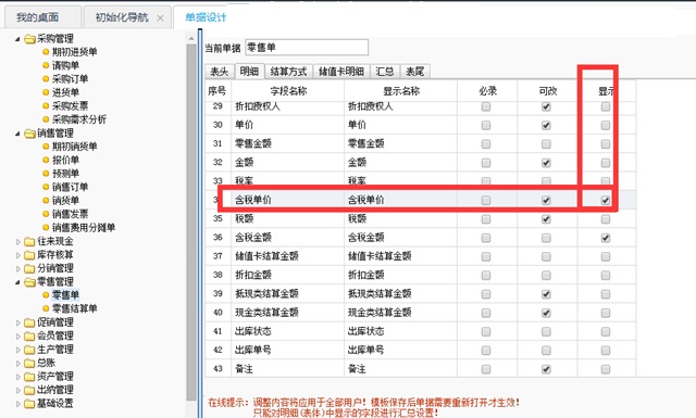 解决方案:登陆用友畅捷通T+软件,点击:系统管理—单据设置—单据设计,零售单上字段不勾显示。然后同步数据。