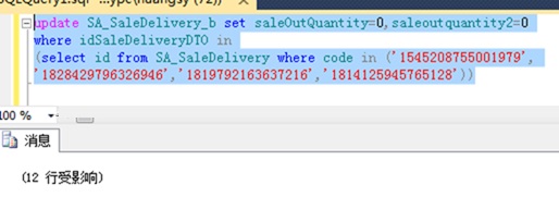 update SA_SaleDelivery_b set saleOutQuantity=0,saleoutquantity2=0 where idSaleDeliveryDTO in (select id from SA_SaleDelivery where code in ('1545208755001979',