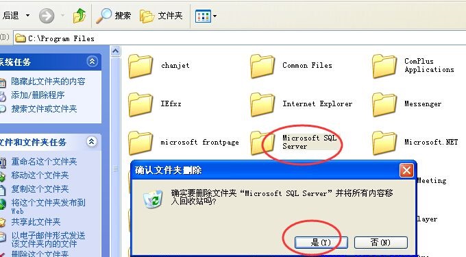 第三步,删除 C:\Program Files\Microsoft SQL Server 文件夹,如果删除不掉,先重启下电脑,再运行一下第二步的工具,然后再删除一下