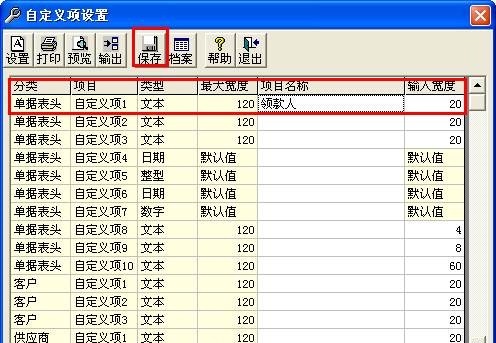 (1)打开用友T3财务软件,依次点击“基础设置”--“自定义项”,增加单据表头的自定义项1,项目名称为“领款人”,然后“保存”。