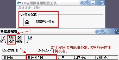 开始-程序-用友U8-应用服务器配置工具-中将服务器——改为:服务器名称。(不可用服务器IP地址)。