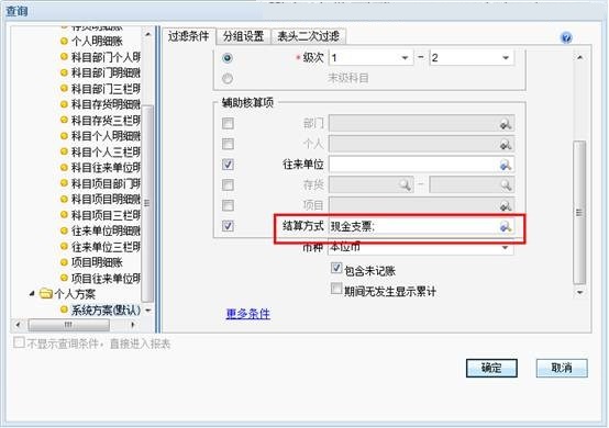 5、如此就可按某个结算方式为查询条件查询科目明细。