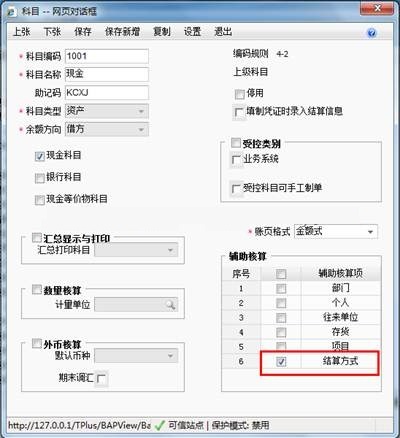 3、填制凭证时该科目需要填写结算方式的辅助信息。注:该结算方式不同于勾选了银行科目所需要填写的结算方式。