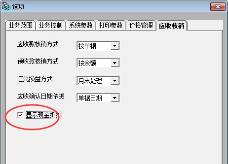 1、销售业务范围设置”-“应收核销”中勾上“显示现金折扣”。