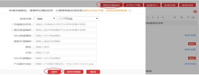 场景三、对绑定电商店铺的店铺,但商品已经下架或修改过,无法匹配的情况,支持通过【新建店铺商品】,把商品名称和商品渠道编码填写上,即可匹配关联商品。