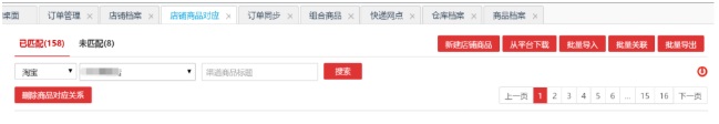 支持从各渠道各店铺下载店铺商品信息、支持导入店铺商品信息;支持店铺商品数据匹配软件中商品数据、支持修改匹配关联;支持删除店铺商品、删除匹配关联;支持店铺商品和匹配关系查询。