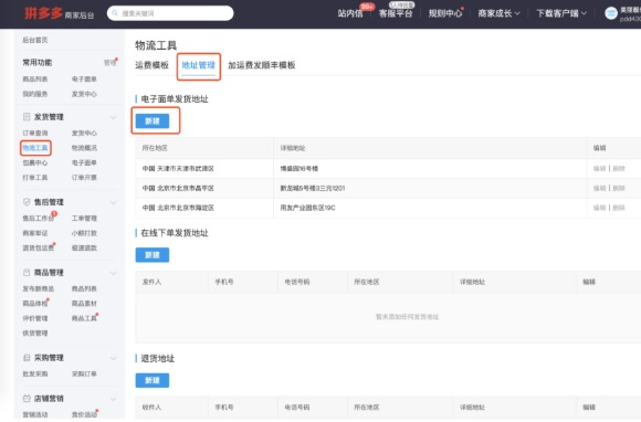 发货单列表点击打印发货单,选择拼多多电子面单,(拼多多电子面单仅可打印拼多多的订单)