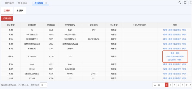 在店铺列表中找到拼多多店铺,点击开启电子面单,需注意:该店铺必须已授权电商通,并且已在拼多多平台开通电子面单服务