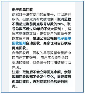 如果订单的发货单还没有打印过快递单,即快递单还没有回写到平台的情况下,可以直接删除,对后续没有任何影响;如果已经打印快递单但是还未发货的情况下,删除发货单,则该单号会被自动回收。经过与菜鸟平台的确认,回收的流程与注意事项如图: