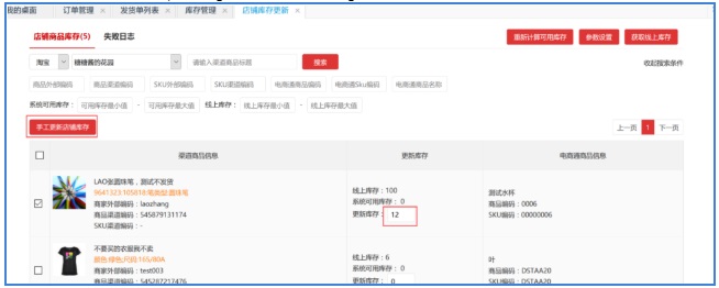 选择店铺商品,点击【手工更新店铺库存】