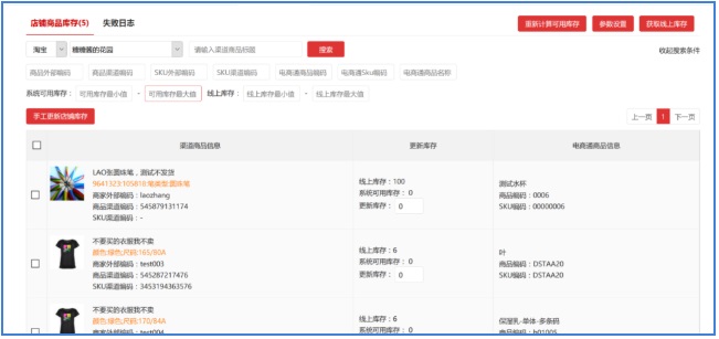 【获取线上库存】将店铺的线上库存同步至电商通中,进行核验;