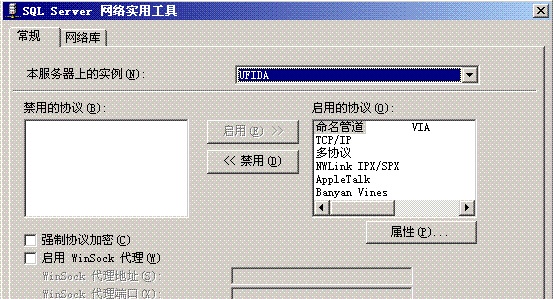 另外,我们还需要点击“开始”-“运行”-输入“svrnetcn.exe”进入SQL Server网络实用工具,点中TCP/IP,点击属性,查看默认端口号是否是1433。(PS:“隐藏服务器”,的意思是指客户端无法通过枚举服务器来看到这台服务器,起到了保护的作用,但不影响连接。所谓枚举服务器是在软件登录界面,点击服务器旁边的小方框后在计算机浏览里不会出现服务器的计算机名。)
