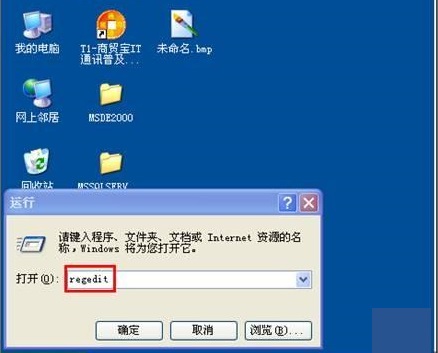 c、打开注册表:点击电脑左下角“开始”-“运行”-输入“regedit”-再点击“确定”。如下图所示: