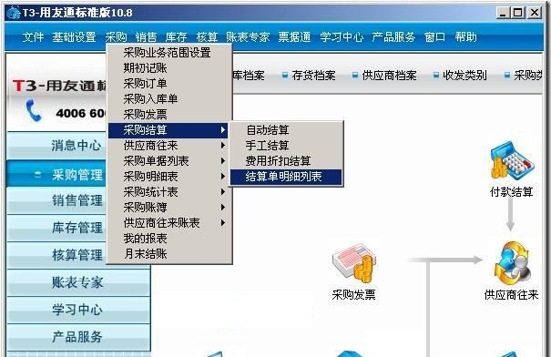 (1) 打开用友T3软件,点击“采购—采购结算—结算单明细列表”