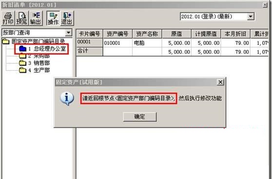 (3)选择“固定资产部门编码目录”,点击“操作”后,鼠标点中想改动固定资产的本月折旧额。