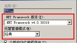 4、修改.net framework版本为.net frameworkV4.0,托管管道模式设置为经典,如下图所示: