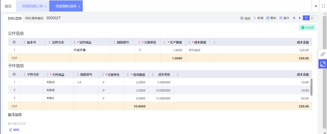 (1)根据接到的销售订单,再通过设计出的物料清单组装产成品。