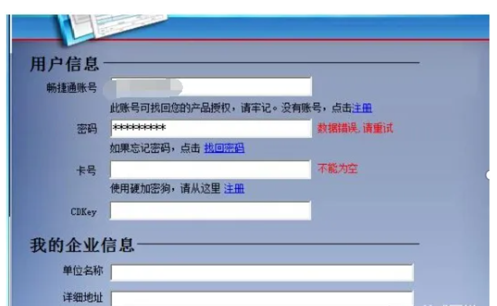 首先确定所输入的信息是否正确,可以尝试用这个账号登录畅捷通服务社区,如果输入无误,可以通过以下方式解决: