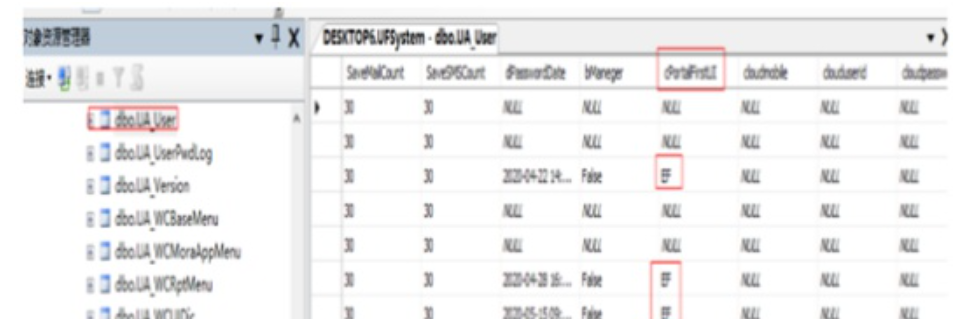 请备份数据后,登录数据库,打开系统库ufsystem中的UA_User这张表,找 到对应的操作员,并把列名为cPortalFirstUIMA中的值修改为EF,修改后再重 新登录软件就可以了。
