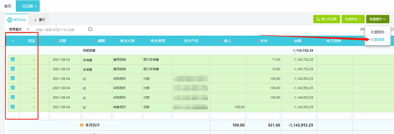 日记账如何批量修改收支类型?