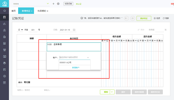 3.添加以后,录入凭证时科目会自动带出辅助核算项目:
