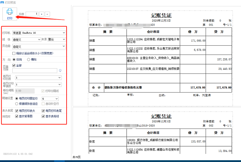 公司在打印凭证时,如果采用的是空白凭证纸,则可以选择专业打印。专业打印更为灵活,可以自定义设置纸张大小、每页凭证数量、分录条数等。