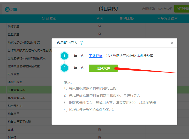 点击【设置】-【科目期初】,找到导入/导出,点击导入科目期初表,下载模板,将所需的数据整理保存,再选择文档进行导入;