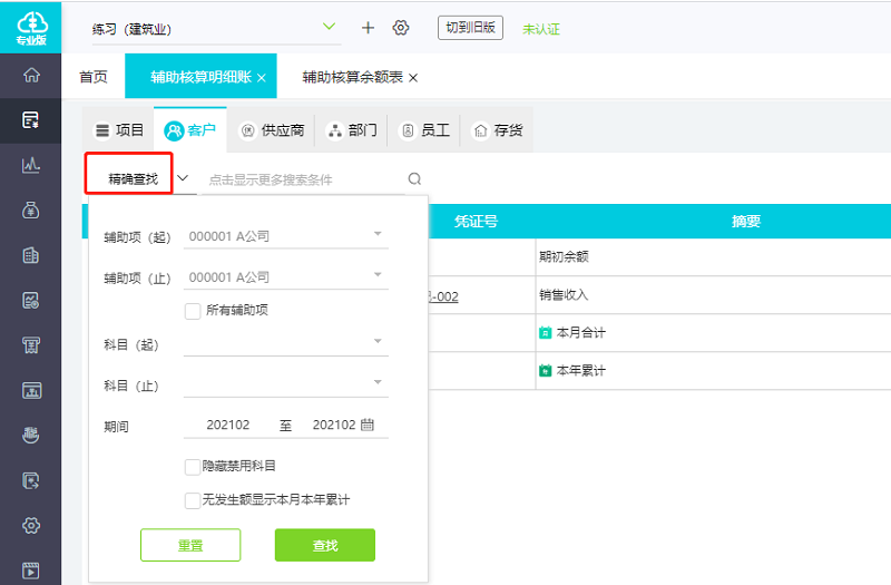 PS:【简单查找】下拉选择【精确查找】,支持选择多个辅助项。