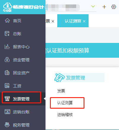 3、点击“发票管理”下“认证测算”,点右上角“测算”按钮生成如下: