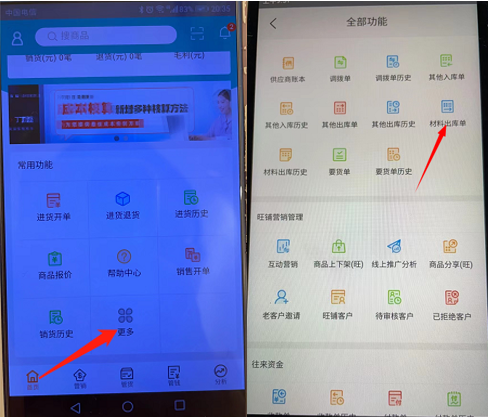 产品解决方案:进入手机端【首页】在【更多】中新增【材料出库单】即可。