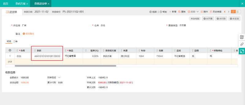 02入库时根据条码方案解析出条形码,打印“商品标签”贴到商品上