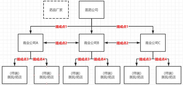 药品从厂家到终端销售,乃至商业公司间的销售,公司有相应的提成,从厂家到终端共计至少需要进行三次以上的提成计算。