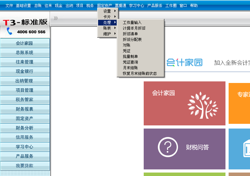 取消月末结账的方法:在【固定资产】-【处理】中“恢复月末结账前状态”。
