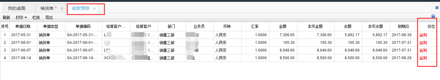 这种方式是,对于临近账期到期的客户,要及时要求业务员向客户催收货款。