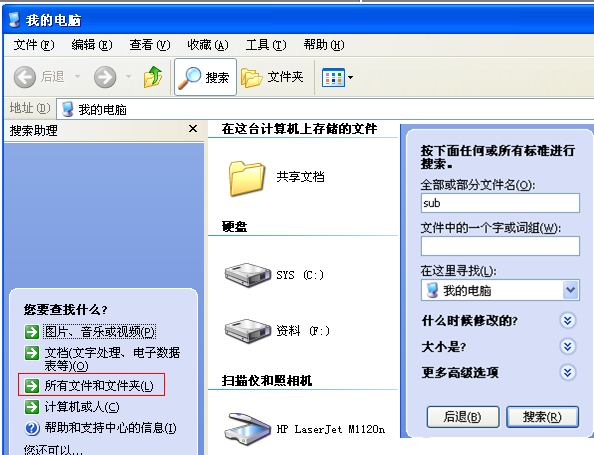 一般在自己常用过的路径文件夹中寻找,如果手动备份的数据放在那里不记得了,可以通过文件搜索来寻找。打开我的电脑,点击上方的搜索按钮,选择“所有文件和文件夹”,搜索文件名“sub”,在搜索到的后缀名包含sub或者nsub的文件中查找最近的备份数据即可。