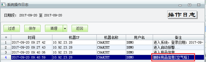 商品使用过,这个商品档案就是不能删除的,如果是没有发生过业务,商品是可以删除的。那么删除商品的记录,我们可以在【系统操作日志】里查看到。
